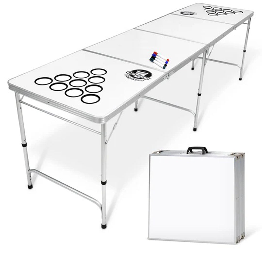 This is the most creative table at the party. The Drink Easy 8ft Dry Erase Beer Pong / Flip Cup Table lets you draw, customize, and dominate—all on a full regulation-size surface that folds neatly into a portable briefcase.